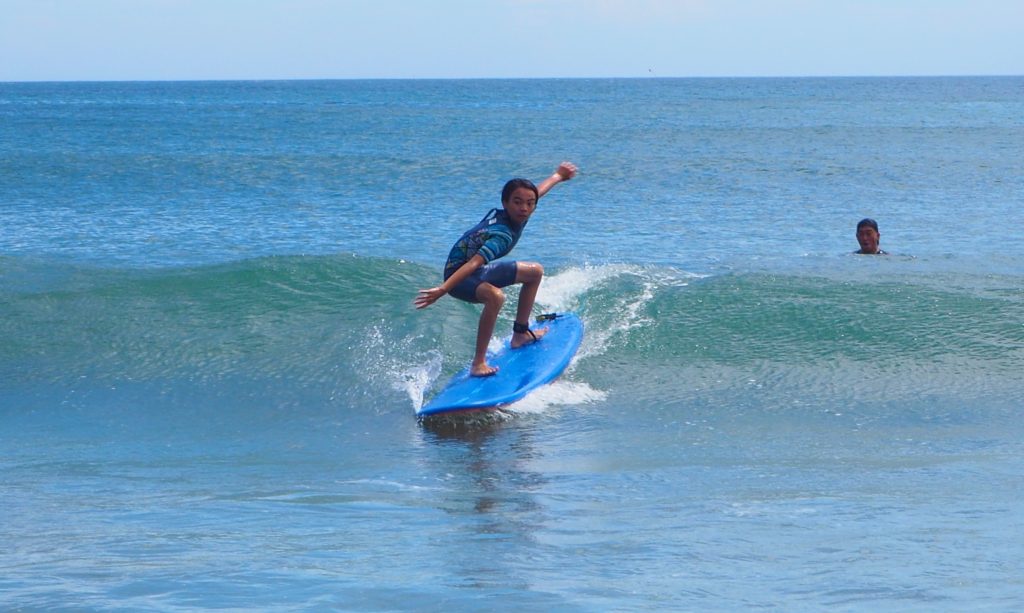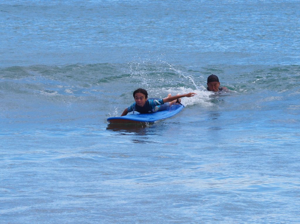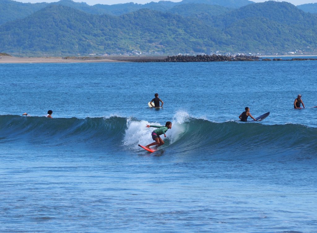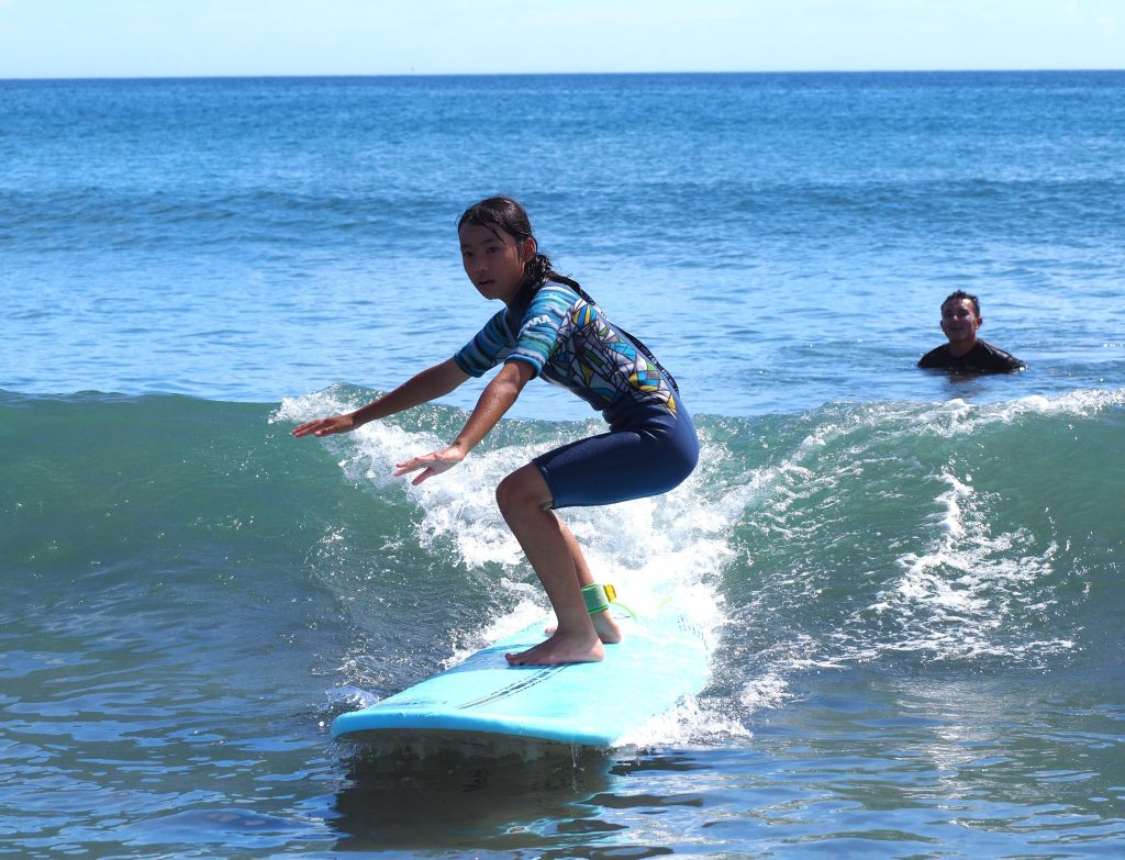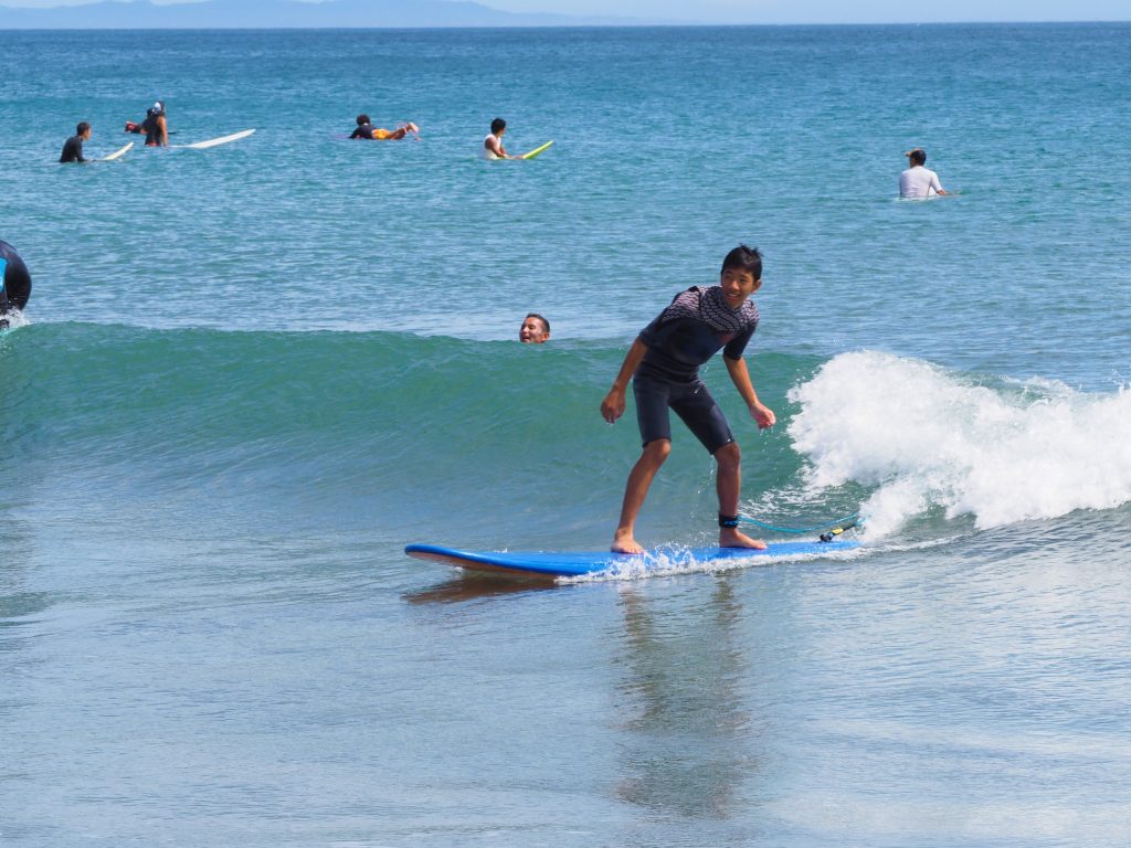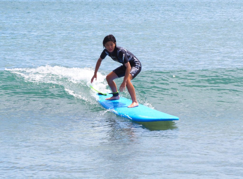「最初に波が目の前に来たときは、思っていたより大きくて少し怖かったけど、実際に波に乗ったらとても楽しかったです。簡単そうに見えるけど、やってみると技術が必要なんだなと感じました」