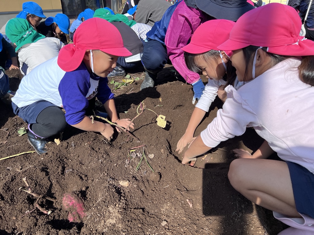 まるで宝探しのような芋掘りに園児の期待も高まります