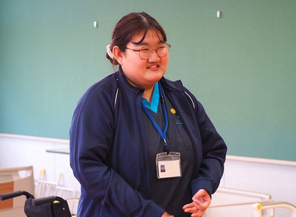 現在、介護福祉学科の唯一の日本人でもある地元出身の学生に話を聞きました。