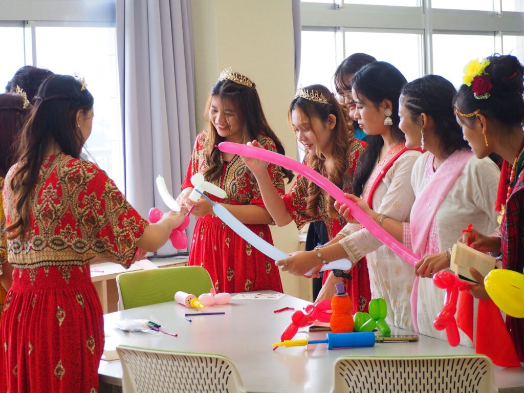 この日は、地域住民と学生が交流できる米粒アートやコースター作りのワークショップ、インドネシアとネパールの学生による民族舞踊、バルーンアート、花カフェの模擬店など、参加者が楽しめる様々なイベントが開催されました。
