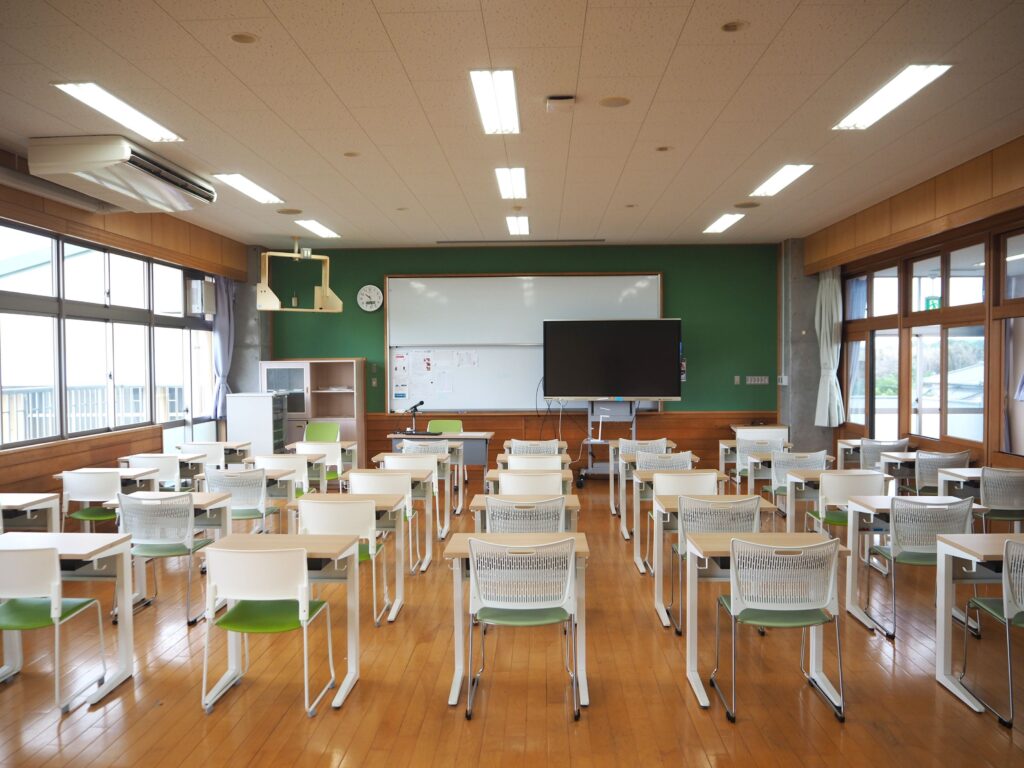 介護福祉学科の座学を行う教室。同教室の空調設備と電子黒板は南房総市のクラウドファンディング型ふるさと納税の寄附金が活用されています。