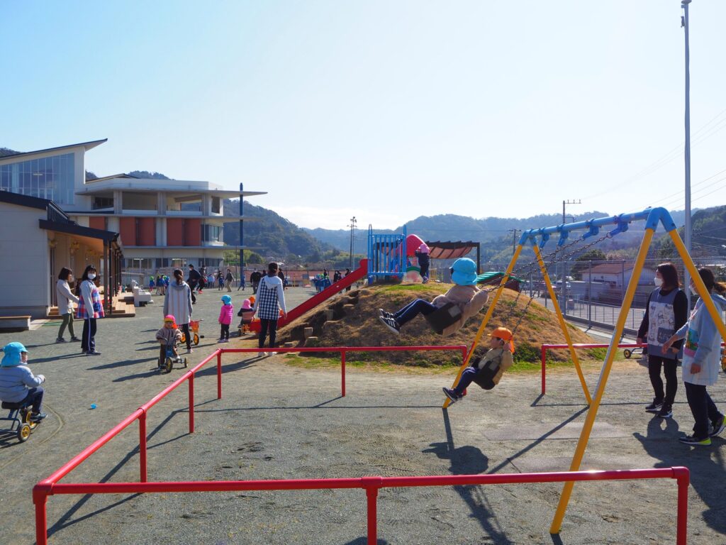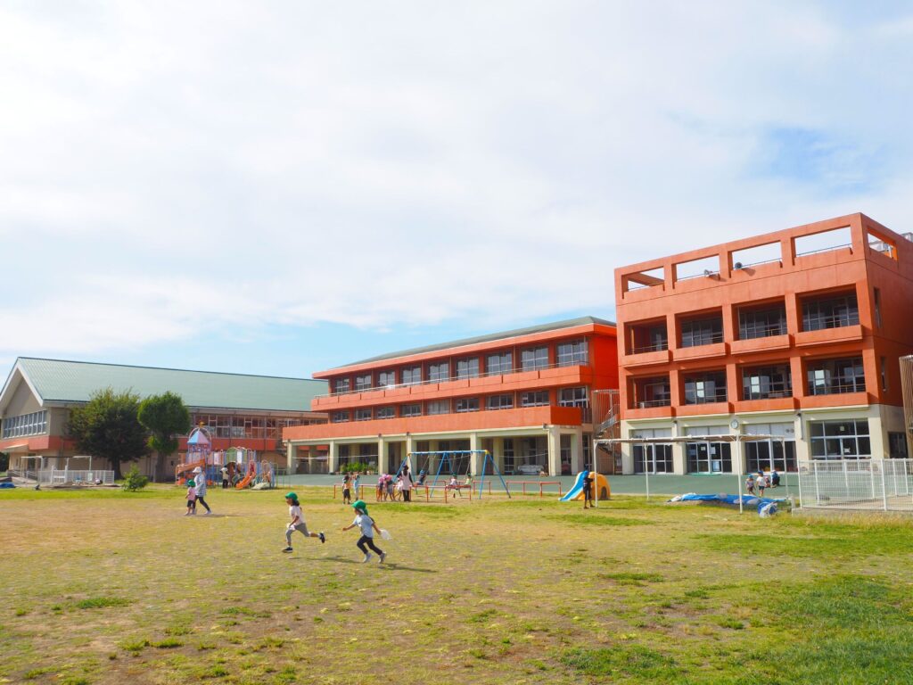 千倉子ども園の広い園庭でのびのびと遊ぶ子どもたち