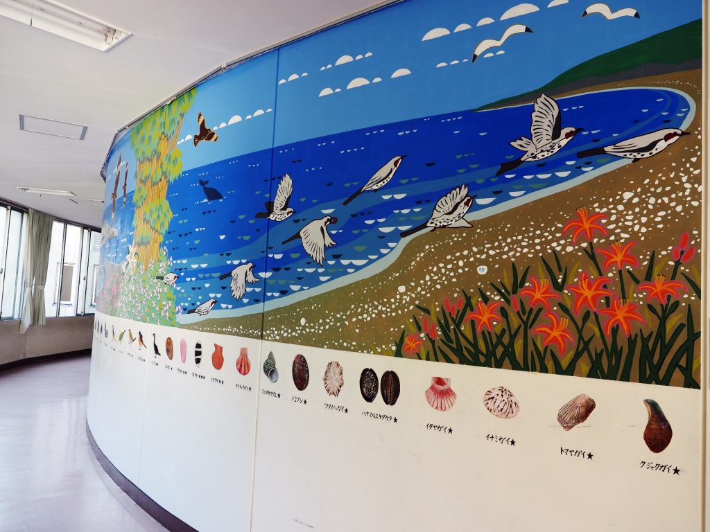 施設内の壁一面に大房岬の魅力がぎゅっと詰まった絵が描かれています。