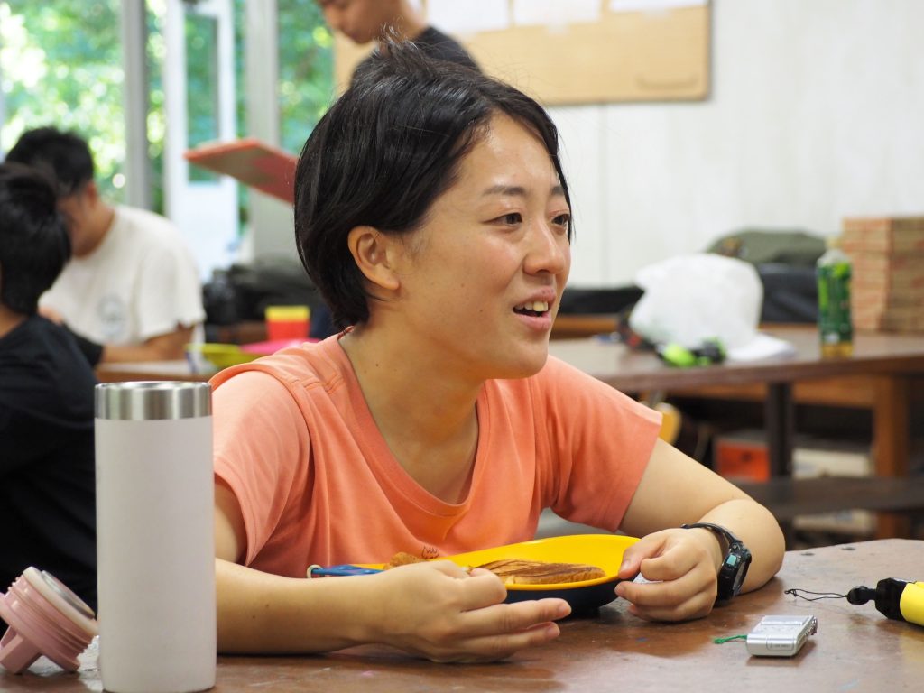 8月に開かれる「できることは自分達次第? ~高学年キャンプ~」を担当しているのは、副所長の花嶋桃子さん。新卒で仕事に就いたときからこのキャンプを担当し、今年で12年目。子どもたちからは、キャンプ名の「ぽにょ」で親しまれています。子どもが好きな花嶋さんは、大学の教育学部在学中にキャンプのボランティアをしたことがきっかけで、ここで働くことになりました。