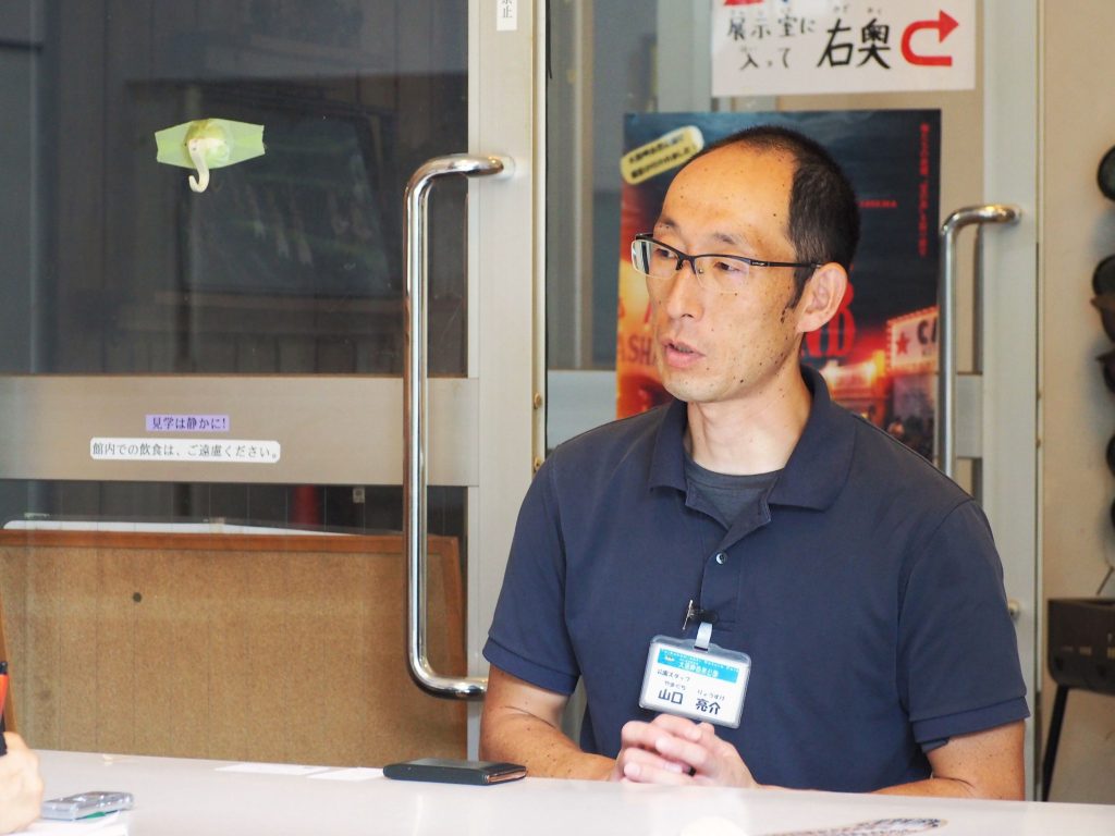 園内にある「ビジターセンター」を拠点に仕事をこなす、大房岬自然公園 公園長の山口亮介さんは、「こめ」というキャンプネームで親しまれています。「自分が好きな仕事をしている姿を、子どもに見せたい」という動機から、この仕事に就きました。ビジターセンターの仕事は、キャンプ場受け入れ対応や団体利用者の調整、イベント企画・運営、草刈りや整備作業など、多岐にわたります。