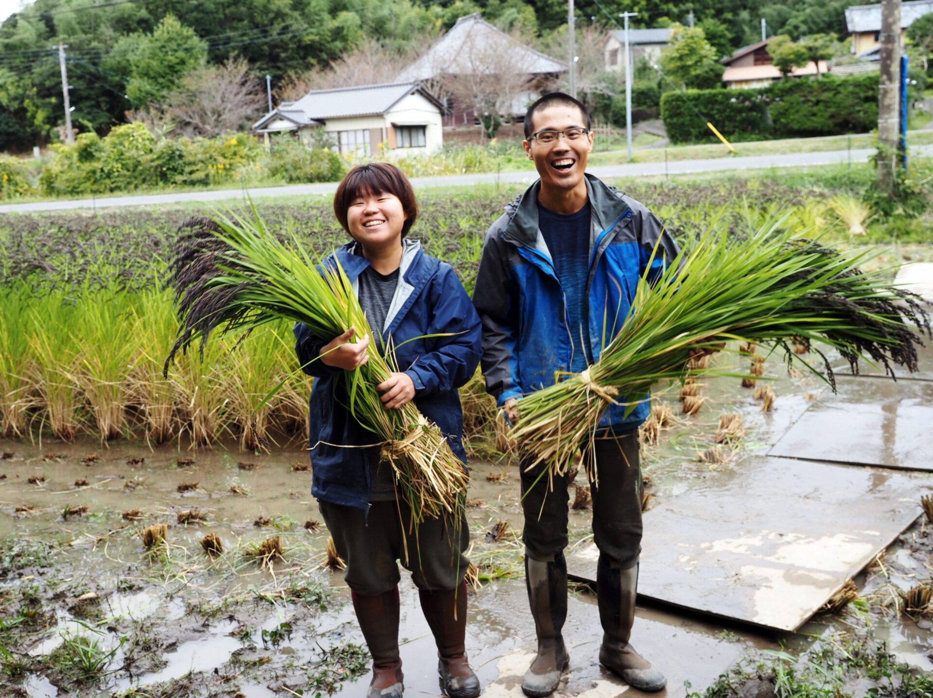 やぎ農園では農作業を一緒に行い、収穫した米や野菜などでお返しをするパートナー制度を導入していて、農に興味のある人たちが多く参加しています。ともに体を動かし、交流しながら作業に参加できるこの取り組みは、研修生の二人にとっても大きな魅力であり、そこでの出会いからも影響を受けているようです。